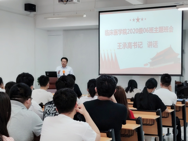 王承高在班会上为同学讲授了一堂发人深省的党史教育课。他以“长征路上的军需处长”和“三个女红军与半条被子”的故事为切入点,深入浅出地对同学们进行党史学习教育,鼓励大家递交入党申请书,并以加入中国共产党作为自身的目标和追求。同时,他向同学们提出了三点期望,一是在党史学习教育中坚定理想信念;二是在专业素质培养中夯实职业本领;三是在医德教育学习中培养高尚操守,勉励大家向院士前辈学习,锤炼家国情怀和社会责任感,厚积薄发,在矢志奋斗中贡献时代、引领未来。
