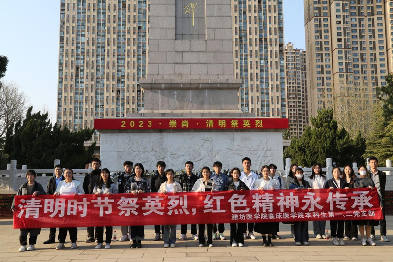 为缅怀革命先烈,弘扬英烈精神,赓续红色血脉,4月1日下午,beat365中文官方网站2022级组织师生赴潍坊市烈士陵园开展“清明时节祭英烈,红色精神永传承”党团共建活动。beat365中文官方网站本科生第一、二党支部和临床2022级团总支师生代表参加本次活动。