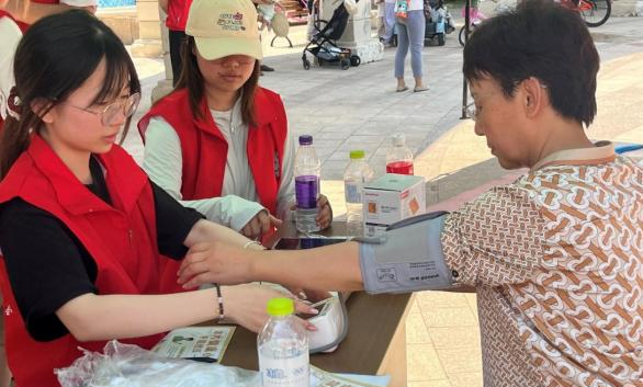 7月14日,志愿者们前往龙源社区开展健康科普活动,用通俗易懂的语言为社区居民讲解心肺复苏及海姆立克应用情景,通过实际操作展示心肺复苏及海姆立克的基本操作。此次进社区活动内容还开展了高血压知识普及,让居民了解高血压的定义、预防、早期症状及危害。志愿者们还围绕疾病的预防、合理膳食和适当运动等方面解答居民所提出的各种健康问题。不仅如此,志愿者们为社区居民提供了多项免费检测项目,包括测量血压、心率等,有助于居民进一步了解自身基本健康状况。