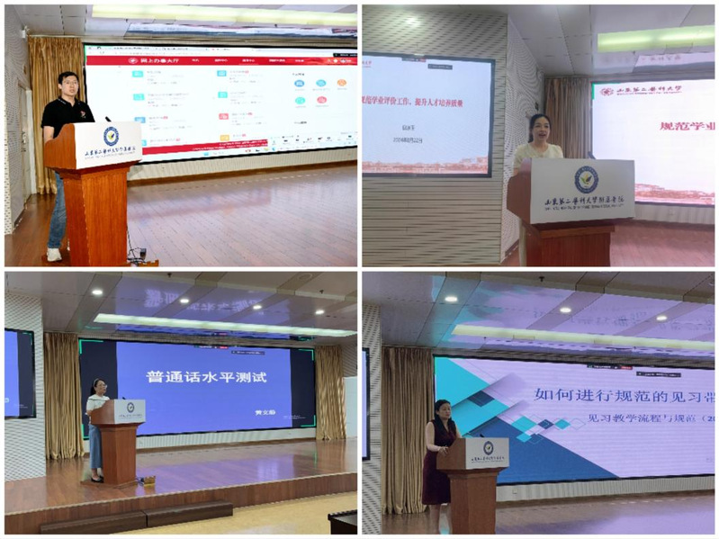 beat365中文官方网站教师发展分中心邀请职能部门相关科室负责人和学院优秀教师进行专题培训,教务处牛健以《教务系统的基本功能介绍及课程信息录入》为题、教务处白冰玉以《规范学业评价工作,提升人才培养质量》为题、管理学院黄文静以《普通话水平测试标准和流程》为题、妇产科学教研室王娟以《如何进行规范的见习带教》为题分别作专题讲座。教学部部署学期初教学任务和本学期重点工作,要求各教研室严格按照要求做好审核评估和教学检查的准备工作,落实开学各项教学准备,确保新学期教学工作秩序正常运行。会后进行课堂管理和教学设计经验研讨会。