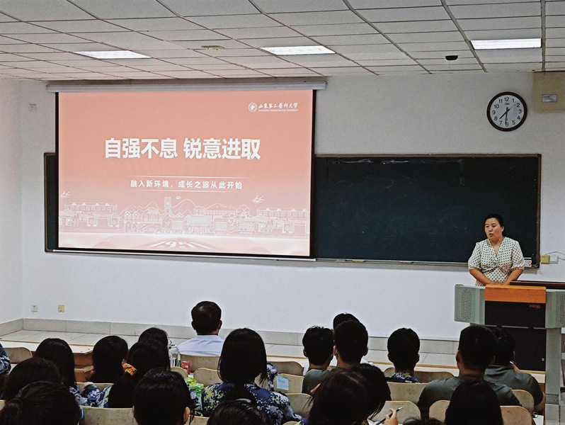 辅导员和班主任分别进行自我介绍,表达对新生的殷切期望和助力学生成长的使命责任。随后,辅导员围绕请销假制度、新生入学考试注意事项、课表安排与教学楼布局、班级自习室使用及注意事项、班级临时负责人选拔与职责等方面展开重点介绍,细致入微地解答学生疑惑,为后续课程学习及入学教育的开展奠定了良好基础。最后,学院组织所有新生共同观看“逐光而行 弘扬科学家精神”——《开学第一课》直播,了解一代代齐鲁科学家的传奇故事,学习他们刻苦钻研、勇于创新、无私奉献的精神,激励新生争做人生追梦人和时代奉献者。