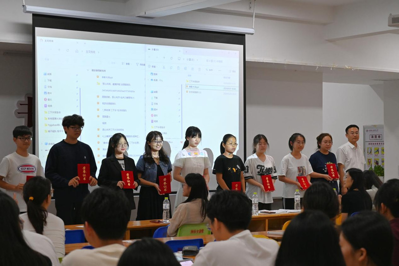 在成果展示环节,学院14支重点团队从组织情况、实践总结、成果展示等多个方面进行详细汇报,社会实践先进个人代表分享实践心得和感悟。学院党委副书记刘刚、学院团委书记刘冰为暑期社会实践先进个人颁发证书。