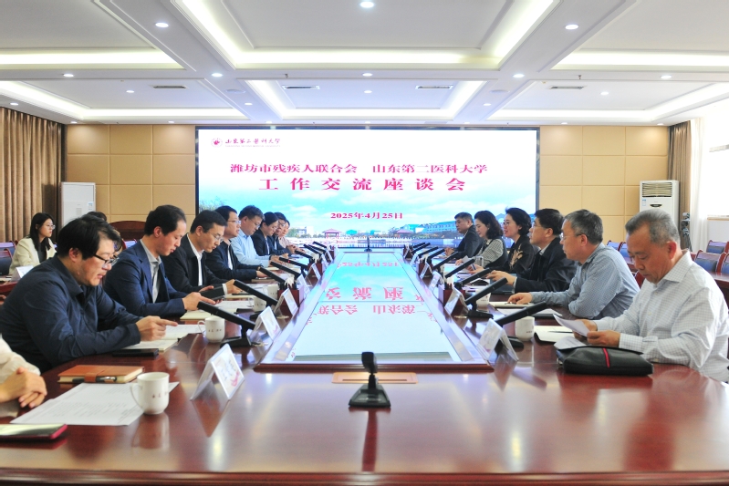 王妍妮对学校近年来给予潍坊市残联的大力支持表示感谢,希望双方不断深化合作,促进资源共享,共同推动潍坊地区残疾人事业更好发展。