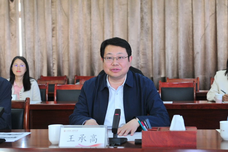 王承高对王妍妮一行表示欢迎,简要介绍了近年来学校高质量发展情况以及学校在推进校地共建方面取得的成绩,他表示学校将深入贯彻落实健康中国战略,以服务地方经济社会发展为己任,为潍坊市残疾人事业发展贡献力量。