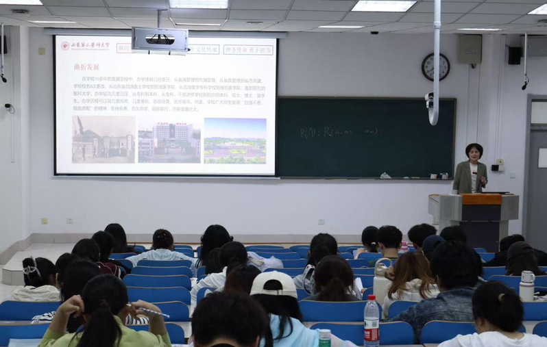 学院2023级团总支书记以“山二医成长记”为脉络,从本科教育稳步推进、成为硕士学位授予单位,到实现更名医科大学和获批博士学位授予单位的两大历史性突破,系统梳理学校从创立之初的艰辛奋斗到如今蓬勃发展的历程、在医学教育方面的卓越成就和杰出校友的风采。鼓励青年学子以校友为榜样,将个人理想与国家医疗卫生事业发展紧密相连,在救死扶伤的实践中厚植医者仁心,在精益求精的钻研中锤炼过硬本领,把求学热情转化为担当使命的实际行动。