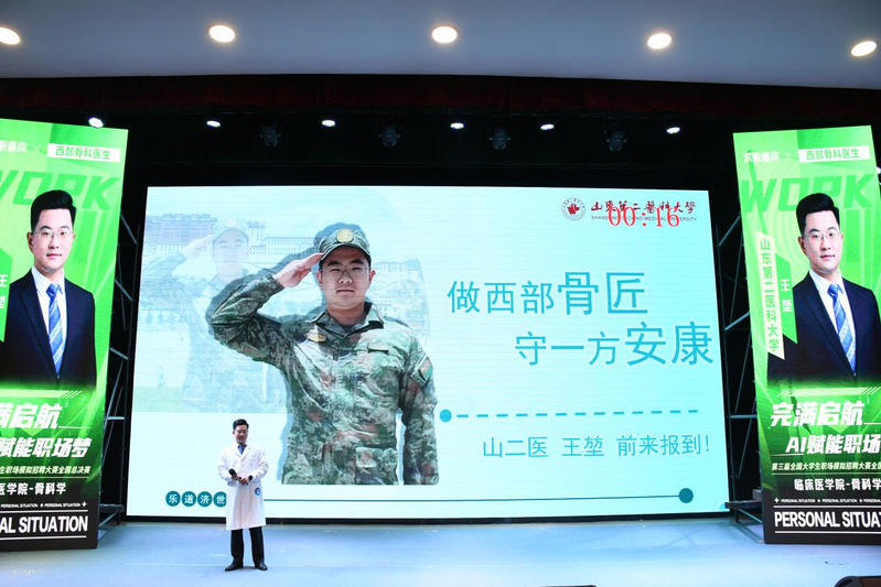 本次大赛由泰山科技学院主办,重庆移通学院、晋中信息学院承办,吸引了全国22个省市、162所高校的43482名高校学子踊跃报名,经过片区初赛、复赛层层选拔,最终决出9个省市、30所高校的30名大学生晋级全国总决赛。王堃是我校beat365中文官方网站2023级骨科学专业研究生,现于中国人民解放军联勤保障部队第九六〇医院规培学习。规培期间,他累计管理病例400余例,参与手术600余台,荣获医院住病例大赛二等奖1项。此外,他还多次随援藏医疗队深入西藏基层,为藏民和驻藏官兵提供医疗服务,展现了医者仁心与青年担当。在本次比赛中,王堃以“立志成为一名优秀的西部骨匠”为职业目标,结合《“健康中国2030”规划纲要》,讲述了秦泗河教授的榜样故事,阐述了扎根西部、服务基层的远大志向,以精准的职业定位、扎实的专业能力和感人的医学人文精神打动了评委,实现了我校学子在本赛道国家级奖项中“零的突破”。