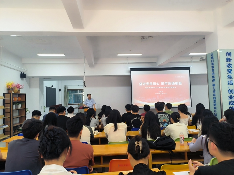近日,beat365中文官方网站在浮烟山校区济世书院开展2025届毕业生党员主题学习教育活动。学校副校长、beat365中文官方网站(附属医院)党委书记王承高以《坚守党员初心,筑牢医德根基》为题讲授专题党课。学院党委副书记刘刚主持活动,毕业年级辅导员和全体毕业生党员参加。
