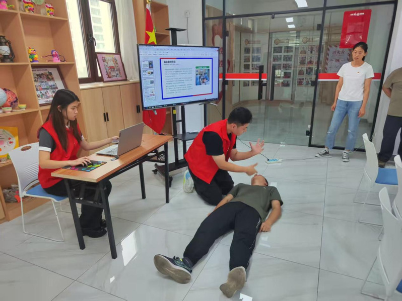 在颐年园养老院,团队针对老年人普遍存在的用药安全知识匮乏等问题,重点普及了《中华人民共和国药品管理法》等相关卫生法律法规,详细讲解处方药与非处方药区别、药品不良反应识别、合理用药原则及药品规范储存等关键知识。此外,团队分别在花园社区和南湖社区设立宣传点,系统宣讲了传染病防治、食品安全、医疗纠纷处理途径等与居民日常生活密切相关的卫生法规通过案例解析、互动问答等形式,使法律条文更贴近居民认知。同时,为应对夏季高温,团队配套开展了热射病预防识别、应急处置要点讲解以及心肺复苏术(CPR)的现场演示与指导。活动全程,团队向参与者分发了精心制作的卫生法治知识宣传材料。