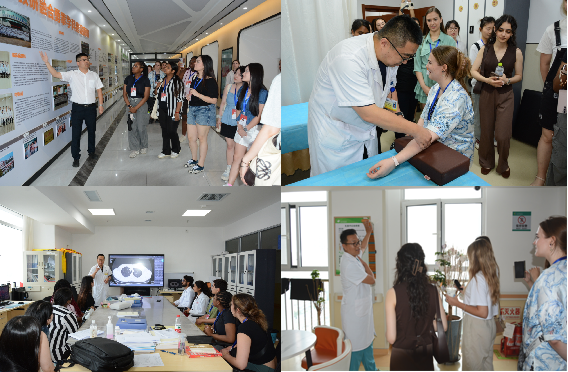 在副院长路中的带领下,访学团通过智慧医疗体验、特色科室参访及中医药文化沉浸式学习,全面了解了学院(医院医教研协同发展的丰硕成果。在欢迎仪式上留学生教学秘书刘财德系统介绍了医院作为省级三甲医院的发展历程,其创新的智慧就医流程引发国际学员热烈讨论。胸外科赵晓华主任、甲状腺乳腺外科张禄尧医师通过现场教学演示,生动展现了微创手术技术优势与规范化诊疗流程。学员们亲身体验电子挂号、AI辅助诊断等数字化服务,并在国医堂参与中医把脉、针灸展示等互动环节,深刻感受到中西医结合诊疗的独特魅力。访学团先后参观了医院文化连廊、门诊智慧化系统及国医堂中医药特色展区。