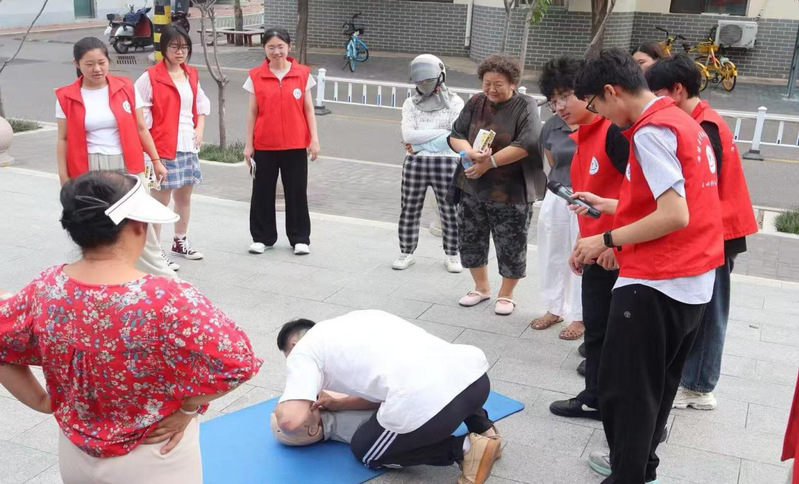 7月16日,志愿队走进潍坊市潍城区西南关社区,开展“健康义诊+急救科普”活动,为社区居民提供疾病咨询、健康指导及应急救护科普。